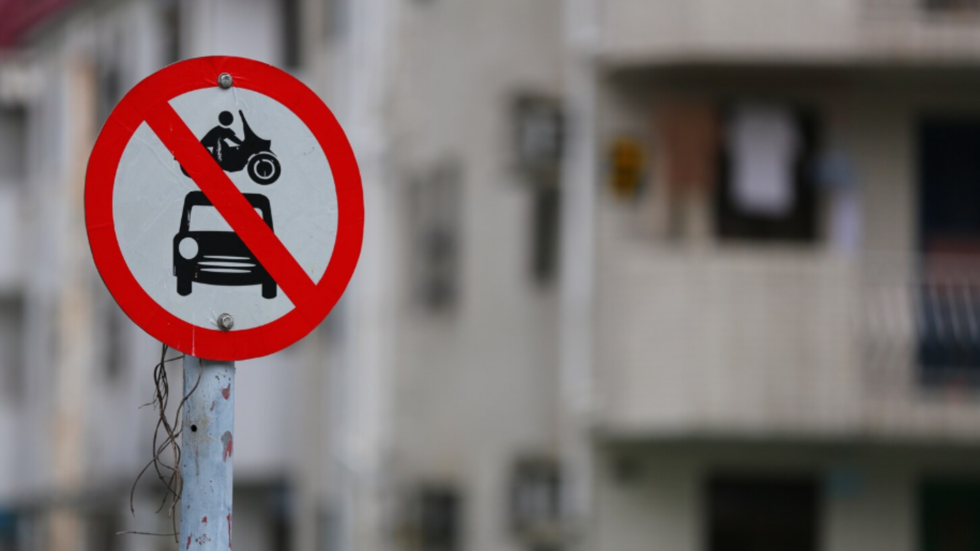 Muitos condutores confundem os sinais, mas a placa com um "E" cortado por uma linha transversal indica que é proibido estacionar. Isso significa que o veículo não pode permanecer imóvel por tempo superior ao necessário para o embarque.